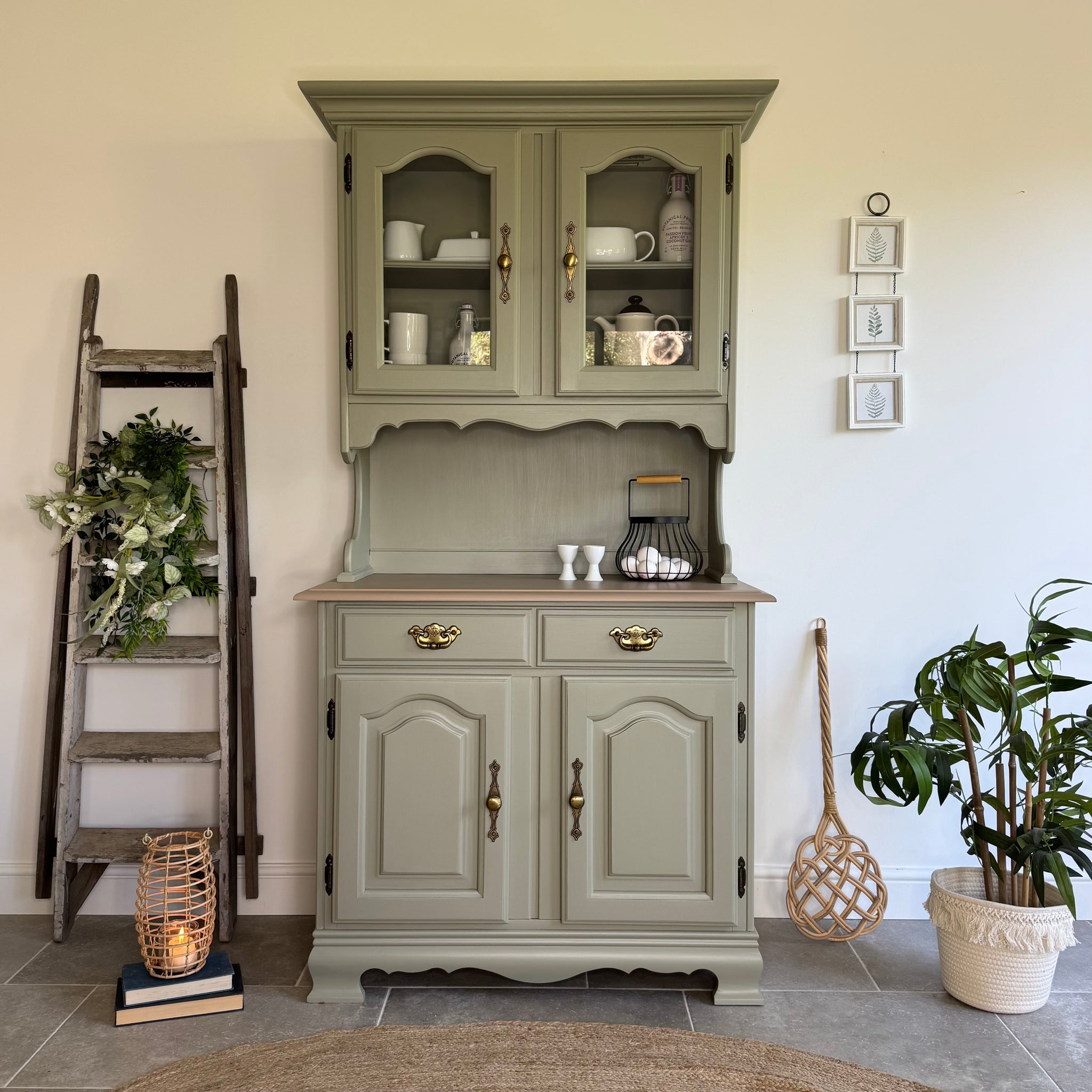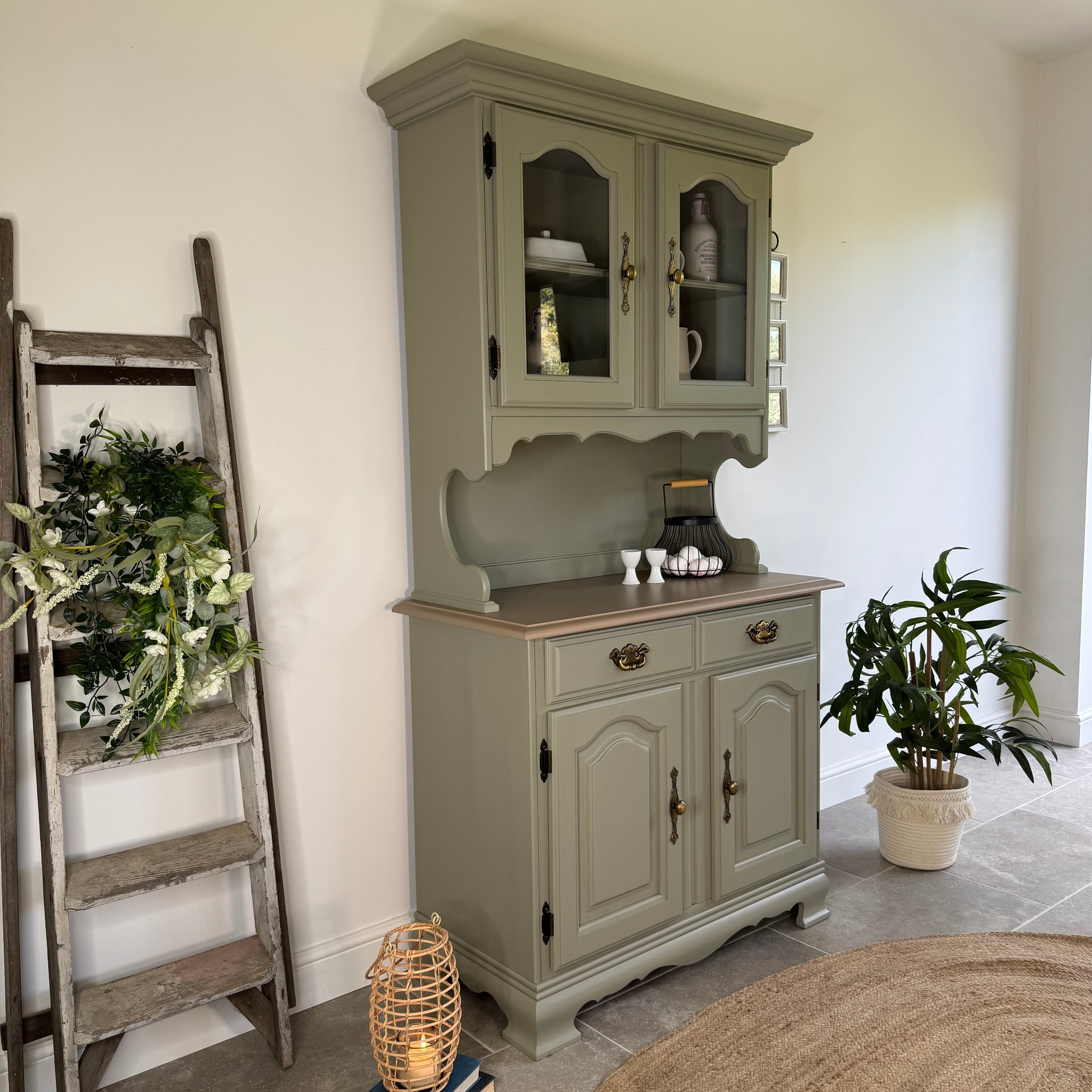 Olive Green Vintage Style Welsh Dresser Cupboard